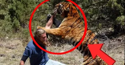 印度一男子山上大戰猛虎,還原了武松打虎真實場面,現場驚心動魄!鏡頭記錄凶慘瞬間!【動物視界】