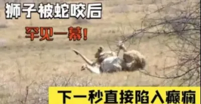 獅子不幸被蛇咬後,不料下一秒直接陷入癲狂,鏡頭拍下罕見一幕