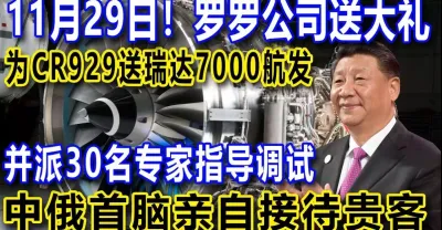 11月29日!羅羅公司送大禮,為CR929送瑞達7000航發,並派30名專家指導調試,中俄首腦親自接待貴客