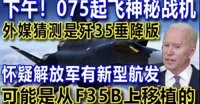 下午!075起飛神秘戰機,外媒猜測是殲35垂降版,懷疑解放軍有新型航發,可能是從F35B上移植的