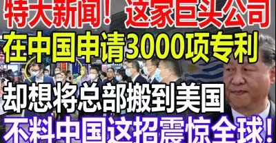 特大新聞!這家巨頭公司!在中國申請3000項專利!卻想將總部搬到美國!不料中國這招震驚全球!