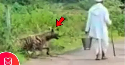 男人不知道鬣狗在他身後