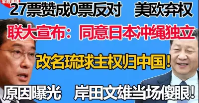 27票贊成!美歐棄權!聯合國宣布:日本沖繩主權歸中國!改名琉球!限時驅逐日本官員!岸田文雄怒問憑什麼!中國甩出4份簽字文件!日本傻眼!