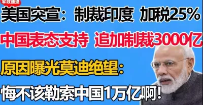 美國突宣:制裁印度!加稅25%共計3000億!中國竟第一個表態支持!宣布跟進位裁!原因曝光莫迪絕望:悔不該勒索中國1萬億啊!