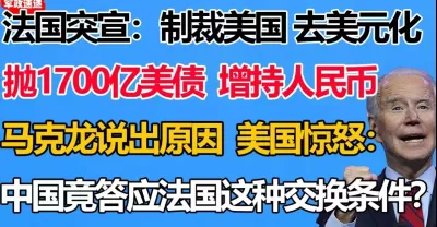 法國突宣:制裁美國!拋售1700億美債!去美元化增持人民幣!馬克龍說出原因!拜登驚怒:中國竟答應法國這種交換條件!