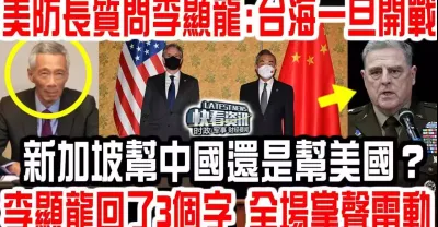 美防長質問李顯龍:台海一旦開戰,新加坡幫中國還是幫美國?李顯龍回了3個字, 全場掌聲雷動!