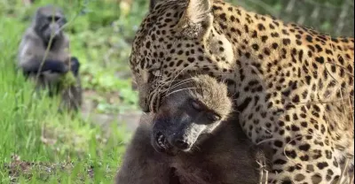 令人難以置信的孤豹在他的部隊面前捉住狒狒