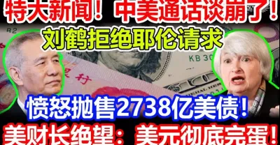 特大新聞!中美通話談崩了!劉鶴直接拒絕耶倫請求憤怒拋售2738億美債!美財長絕望:美元徹底完蛋 ?