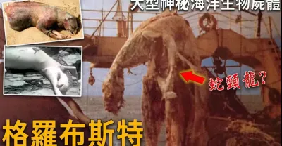 格羅布斯特Globster-大型神秘海洋生物屍體,1977年日本瑞洋丸號捕撈到疑似蛇頸龍遺骸、2008年美國長島蒙托克怪物、2009年巴拿馬怪物。