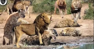 鬣狗獅子大型活吃現場,互相撕咬掏出內臟,仍要上前戰鬥