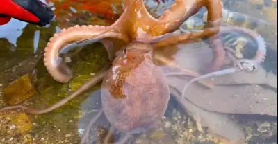 小章趕海抓了不少八爪魚,發現一條全身雪白的魚,趕海第一次見!