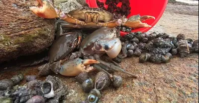 阿文趕海意外闖進「螃蟹島」,隨便抓的螃蟹都是極品個頭,太爽了