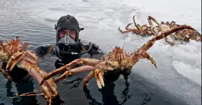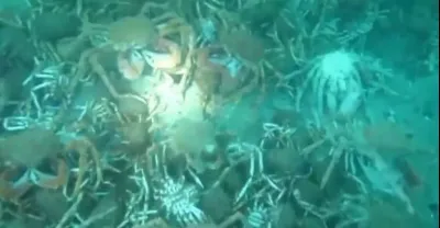老外潛入海底捕撈帝王蟹,看到眼前景象,幾人不淡定了