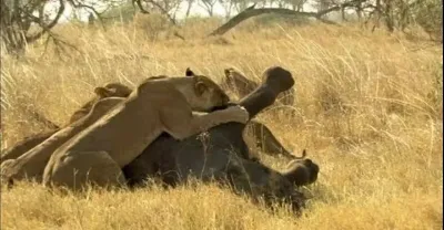 一群獅子圍攻落單大象,鏡頭記錄全過程