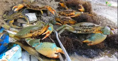 養殖場海鮮泄漏,引來「極品蟹王」滿地搶食,,阿文全部一網打盡
