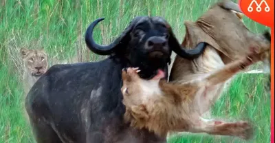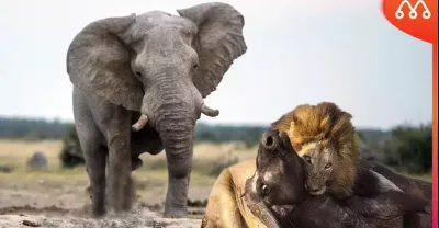 大象攻擊獅子拯救水牛