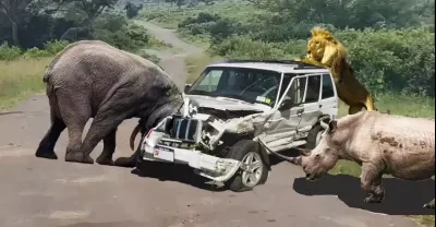 野生動物が怒るとき!!►► サイ、バッファロー、ライオン、象の襲撃 車と人々 ・クレイジーアニマルモーメント 2021
