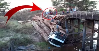 超載伐木卡車試圖穿越巴西極其泥濘的道路