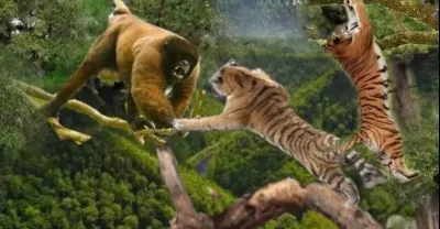 大錯誤老虎在樹上與狒狒搏鬥 野生動物2021大合集!