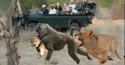 動物世界 愚蠢的狒狒敢於奪取叢林之王並為他的生命付出代價!