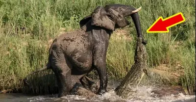 4米長鱷魚偷襲大象,不料下一秒被反殺,廝殺場面太瘋狂了!