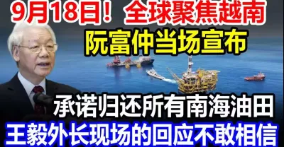 9月18日!全球聚焦越南!阮富仲當場宣布,承諾歸還所有南海油田,王毅外長現場的回應不敢相信