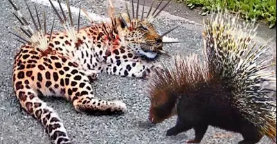 豹子試圖攻擊刺蝟時不幸死亡 - 刺蝟對豹、獅子、蟒蛇