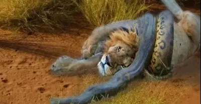 蟒蛇攻擊獅子非常用力,野生動物攻擊