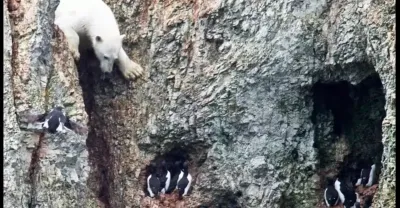 一隻飢餓的北極熊冒著生命危險! -