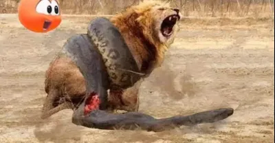 獅子無法逃脫巨型蟒蛇!獅子襲擊大蟒蛇,獅子——蟒蛇