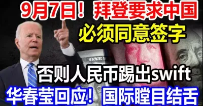 9月7日!拜登要求中國,必須同意簽字!否則人民幣踢出swift!華春瑩回應!國際瞠目結舌!