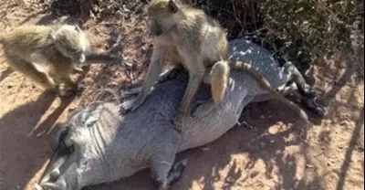 厲害了我的非洲大叔,訓練猴子捉野豬,笑得我肚子都疼了