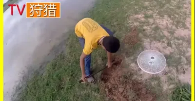 獨特的捕魚方式。河邊製作獨特的陷阱。