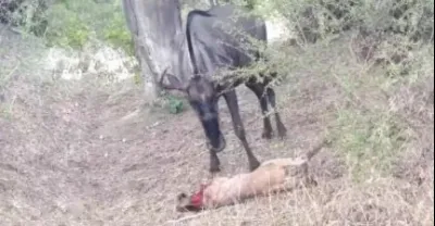 大自然生存法則 角馬欲救幼崽與獵豹僵持 幼崽無力起身終被放棄