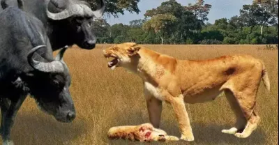 憤怒的水牛群殺死獅子媽媽和她的寶寶