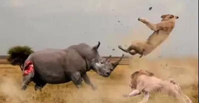 犀牛在野生動物中,對抗獅子、河馬、大象、水牛、長頸鹿甚至汽車。