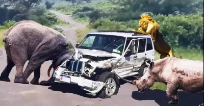 TOP10 動物攻擊!野生動物攻擊車,瘋狂的水牛襲擊汽車 發現!