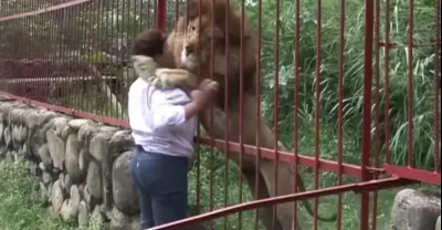 當獅子看到救命恩人時,直接撲了上去