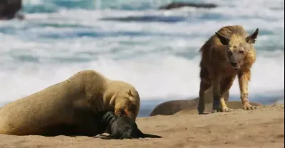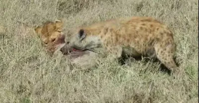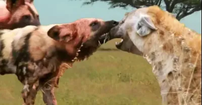 憤怒的野狗試圖殺死偷食物的鬣狗
