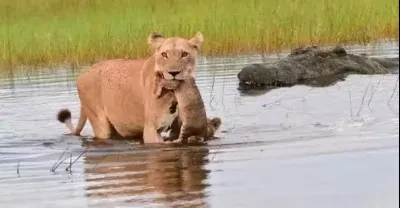 鱷魚來了,獅子大戰鱷魚