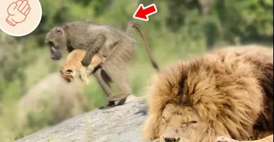 動物們的驚人之舉!狒狒抱走獅子的兒女