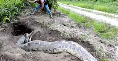 男主在地洞發現蛇尾,挖出後竟然那麼大隻。