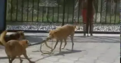 村裡熱鬧了,狗狗對上蛇