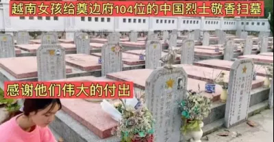 越南女孩給奠邊府104位中國烈士敬香掃墓。感謝他們做出偉大的犧牲