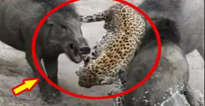 野豬VS豹子,野豬發瘋起來還可怕