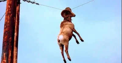 野生山羊居然莫名被電線掛在空中!差點就成了美味的烤羊肉!