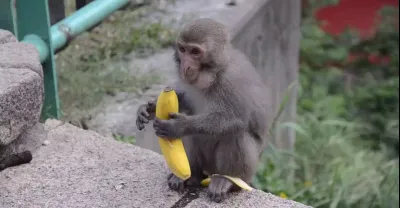 猴子吃香蕉,鏡頭拍下全過程
