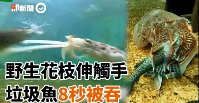 野生花枝無預警伸觸手~垃圾魚8秒被吞|吳郭魚|動物本性|捕獵物|魚