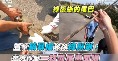 【直擊鎮暴槍移除綠鬣蜥!奮力掙脫一秒斷尾畫面曝】|@J爸
