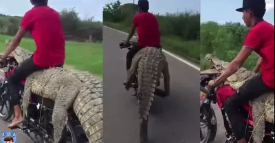 膽大包天!青少年開機車騎在鱷魚身上!完全毫不畏懼!